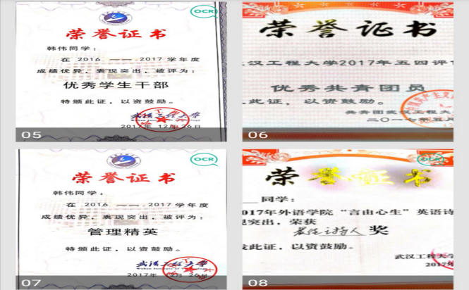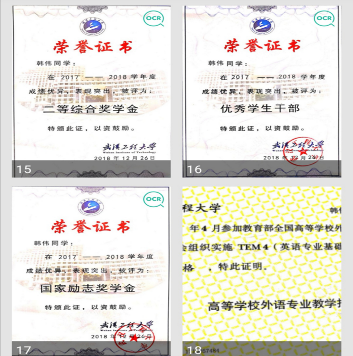 2017-2018年度获“国家励志奖学金”,“二等综合奖学金”;