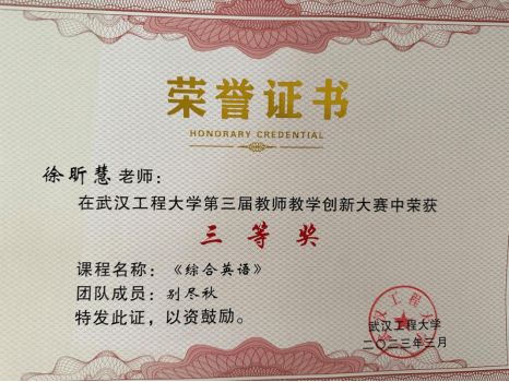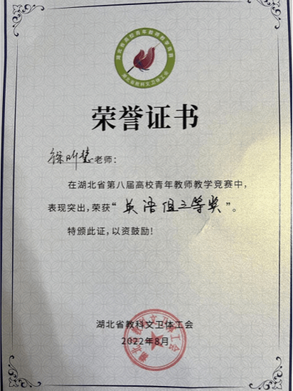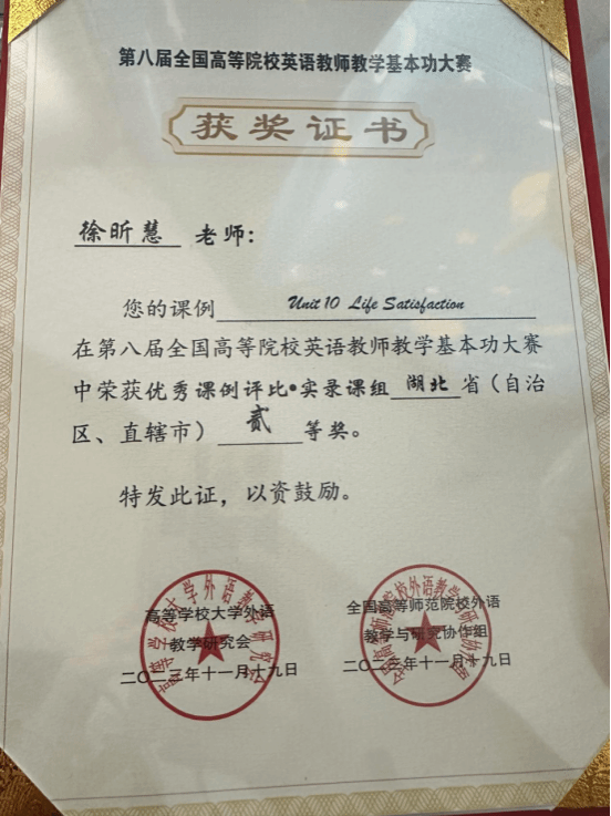 获得奖励:外语类专业组湖北赛区英语专业二等奖