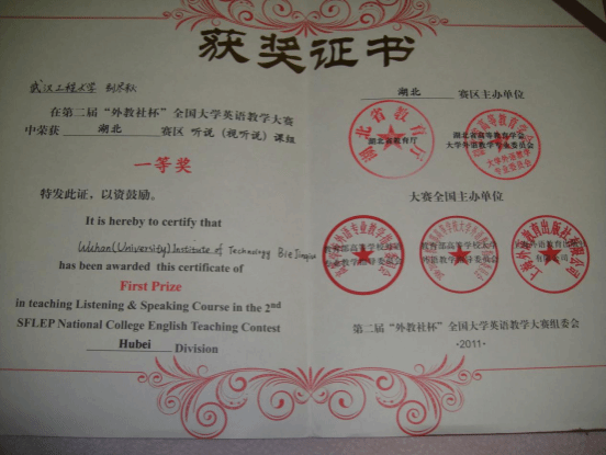 获得奖励:湖北省一等奖