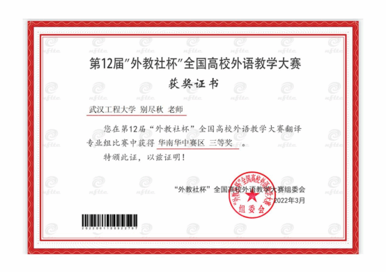 参赛项目:“外教社杯” 全国大学英语教学大赛