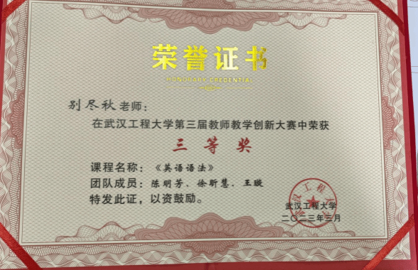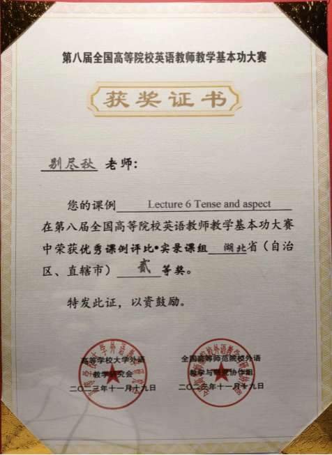 课程建设: 《英语语法》湖北省一流课程(负责人)